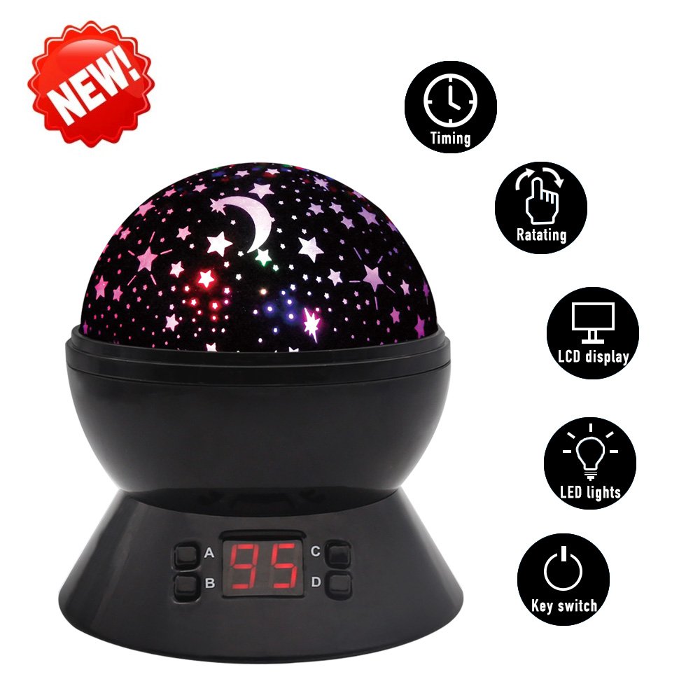 • The SCOPOW Constellation Night Light Star Sky with LED Timer Auto-Shut Off, 360 Degree Rotation Colorful Moon Night Lamp Gift for Baby Kid Children Bedroom Nursery Decor (Black) is a