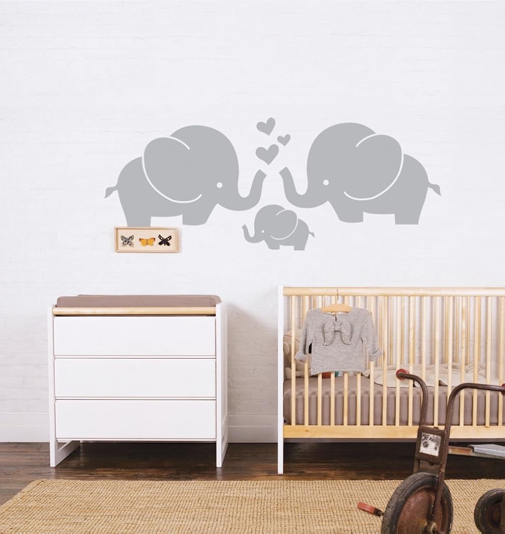 • The ANBER Cute Elephant Family With Hearts Wall Decals Baby Nursery Decor Kids Room Wall Stickers, 30''W x11.8''H, Grey is a