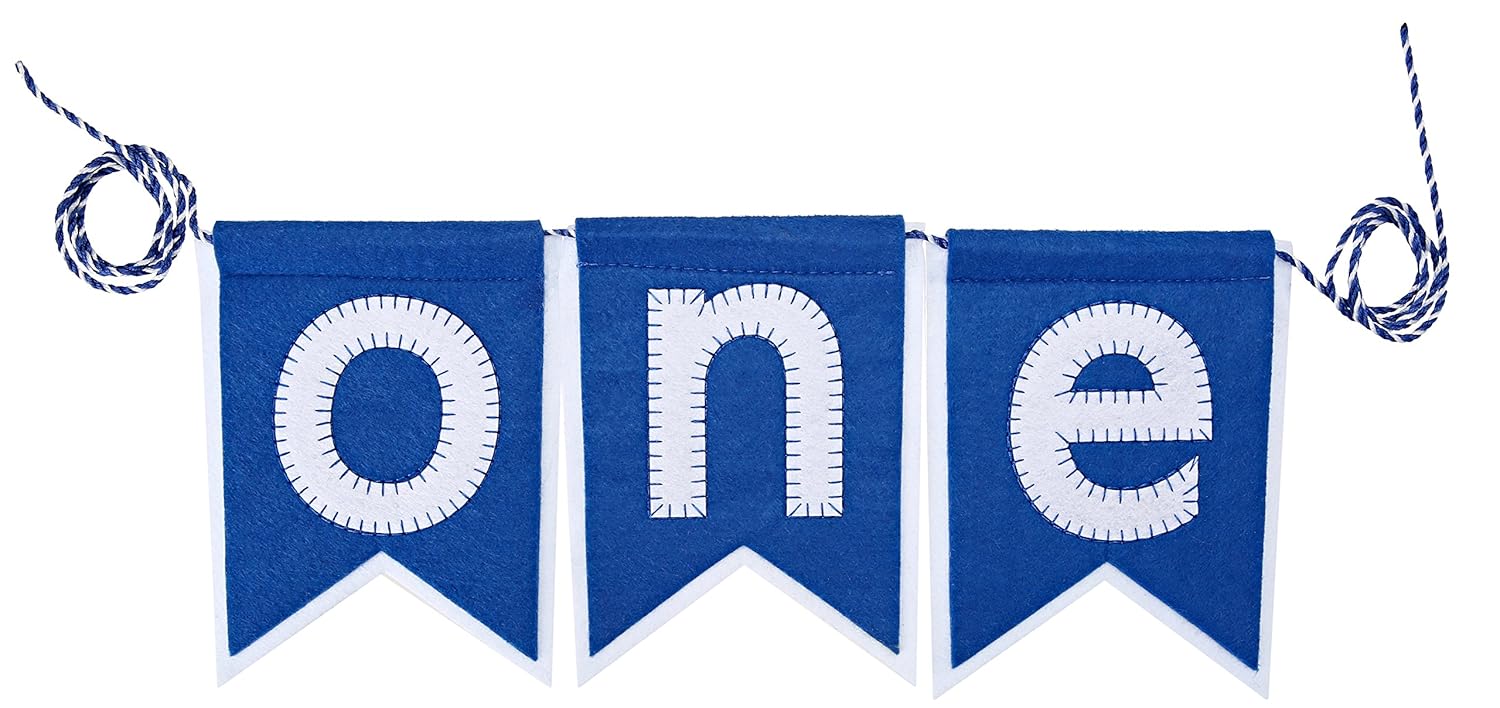 • The Mud Pie "ONE" Pennant Happy Birthday Boy High Chair Banner Garland Sign Felt is a
