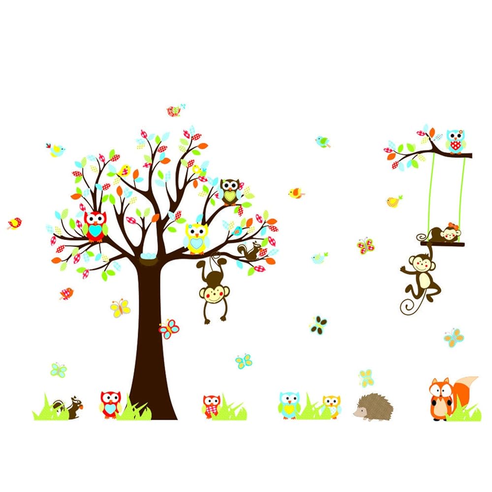 • The DaGouCartoon Forest Animal Owls Tree Swing Nursery Wall Stickers Wall Murals , Removable Art Wall Decals for Kids Girls Room Decoration is a