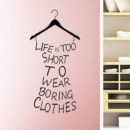 • The Ussore Wall Art Sticker Decal Mural Life Is Too Short To Wear Boring Clothes Vinyl Applique Art For Kids Home living room bedroom bathroom kitchen Office Wallpaper Window (Black) is a