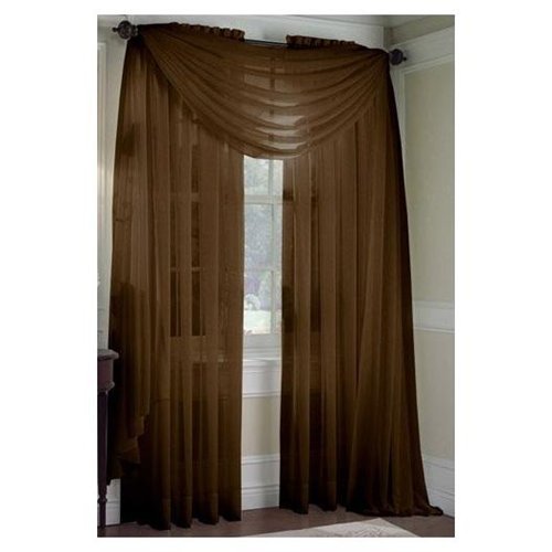 • The MONAGIFTS BROWN CHOCLATE Scarf Voile Window Panel Solid sheer valance curtains 216" LONG is a