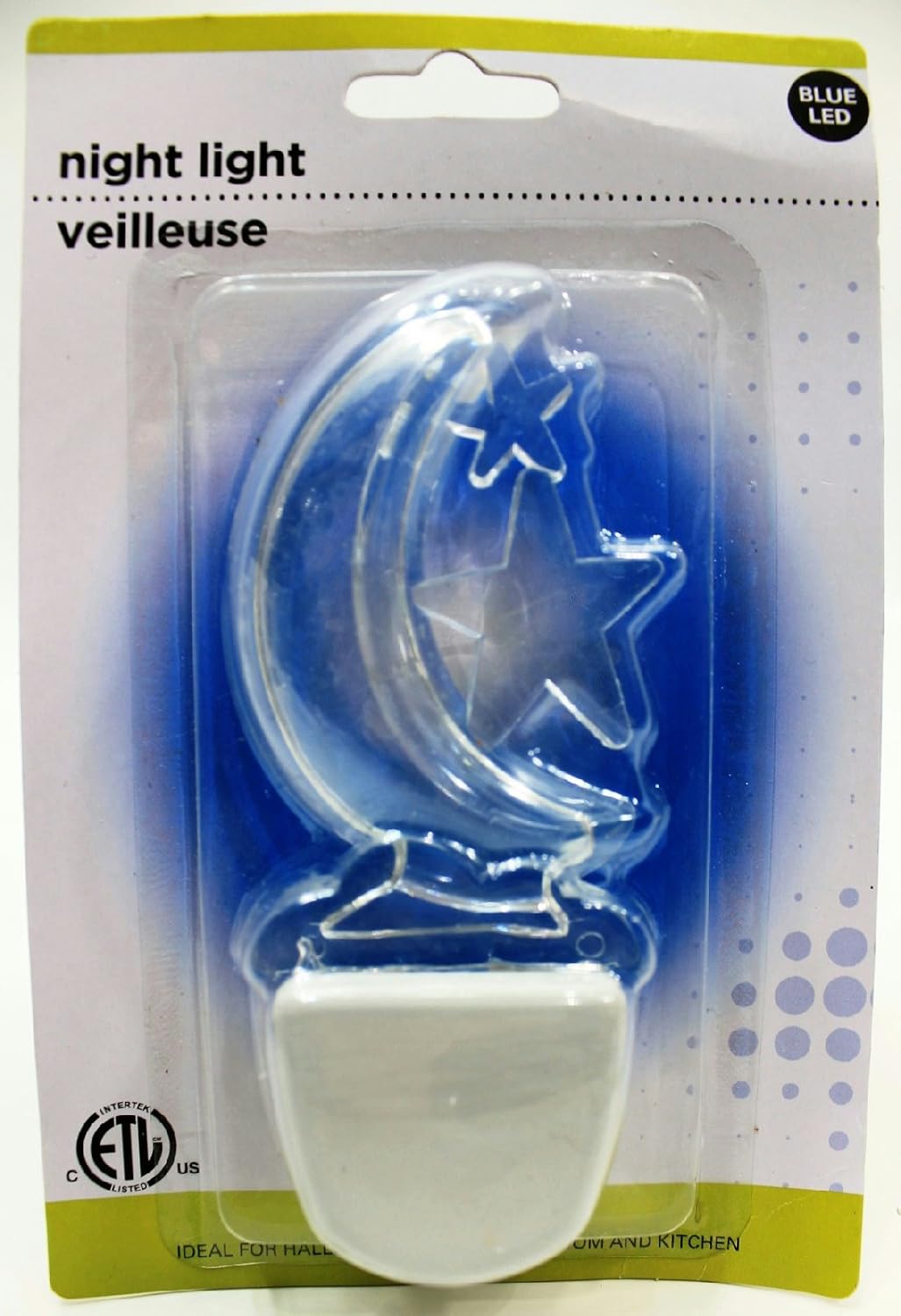 • The (Pack of 2) Clear Multi-room Blue LED Night Light Moon and Stars is a