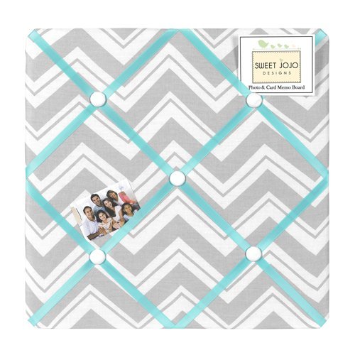 • The Turquoise and Gray Chevron Zig Zag Fabric Memory/Memo Photo Bulletin Board by Sweet Jojo Designs is a