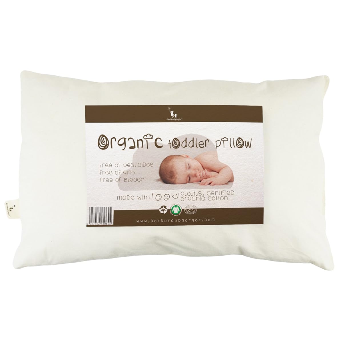 • The DorDor & GorGor Toddler Pillow WITH PILLOWCASE, Organic Cotton, Beige, 13x18 in is a