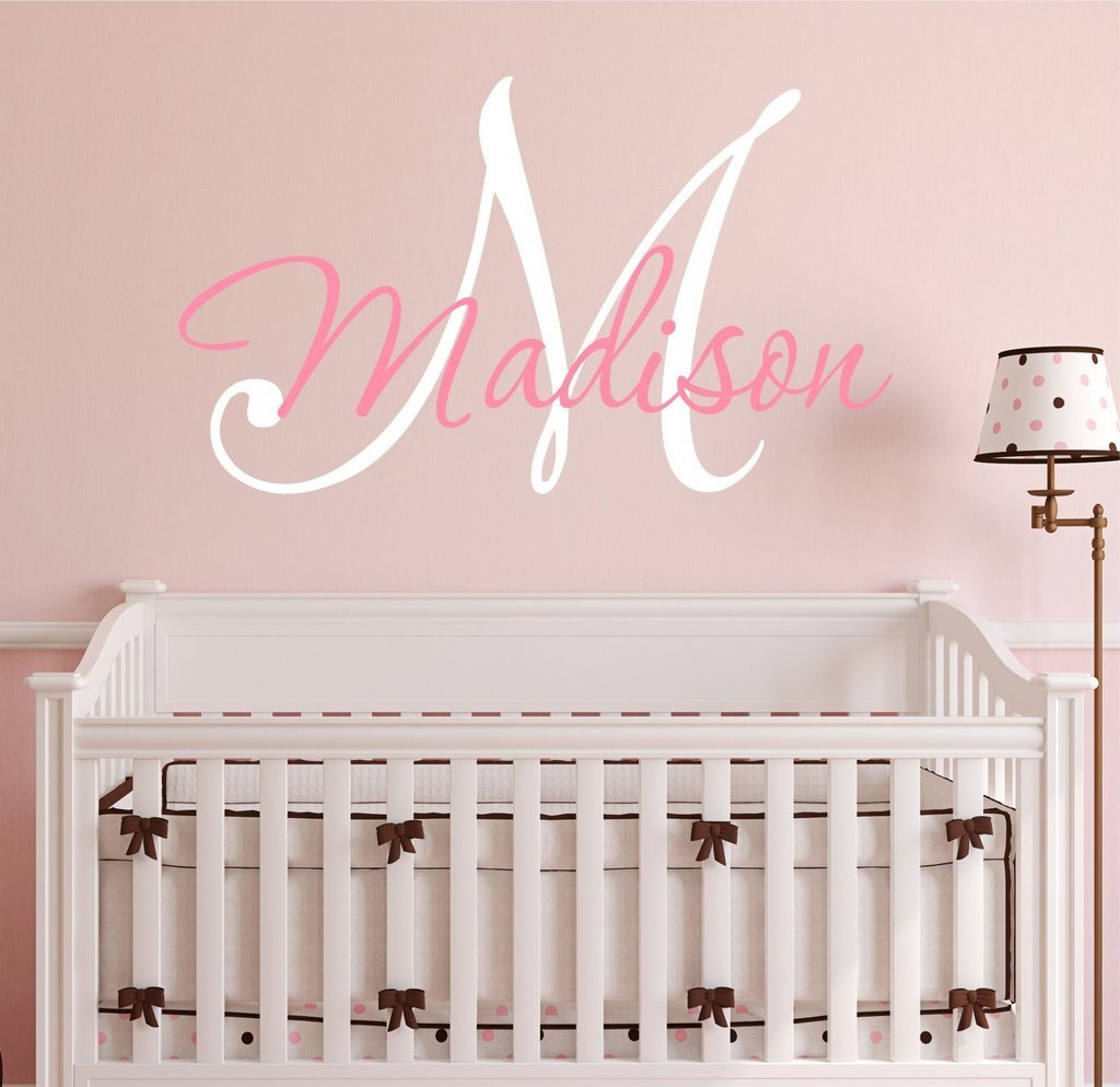 • The Nursery Custom Name and Initial Wall Decal Sticker 23" W by 17" H, Girl Name Wall Decal, Girls Name, Wall Decor, Personalized, Girls Name Decor, Nursery Bedroom Baby Decor PLUS FREE HELLO DOOR DECAL is a