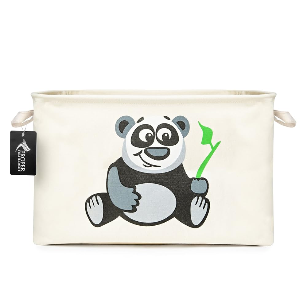 • The Proper Fulfillment Canvas Storage Basket and Organizer with Handles, Collapsible, Best Choice for Toy Storage, Kids Books, Baby Clothing, Laundry Bin (Panda) is a