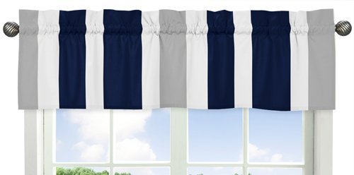 • The Navy Blue, Gray and White Window Treatment Valance for Stripes Bedding Collection is a