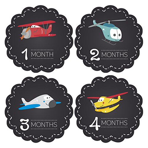• The Pinkie Penguin Baby Monthly Stickers - Airplanes Chalkboard - Milestone Onesie Stickers - 1-12 Months - Baby Shower Gift is a