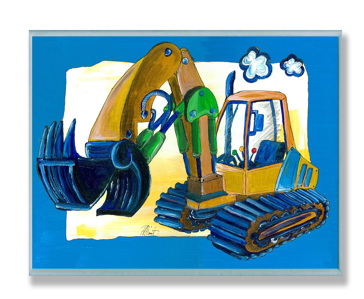 • The The Kids Room by Stupell Yellow Excavator with Blue Border Rectangle Wall Plaque is a