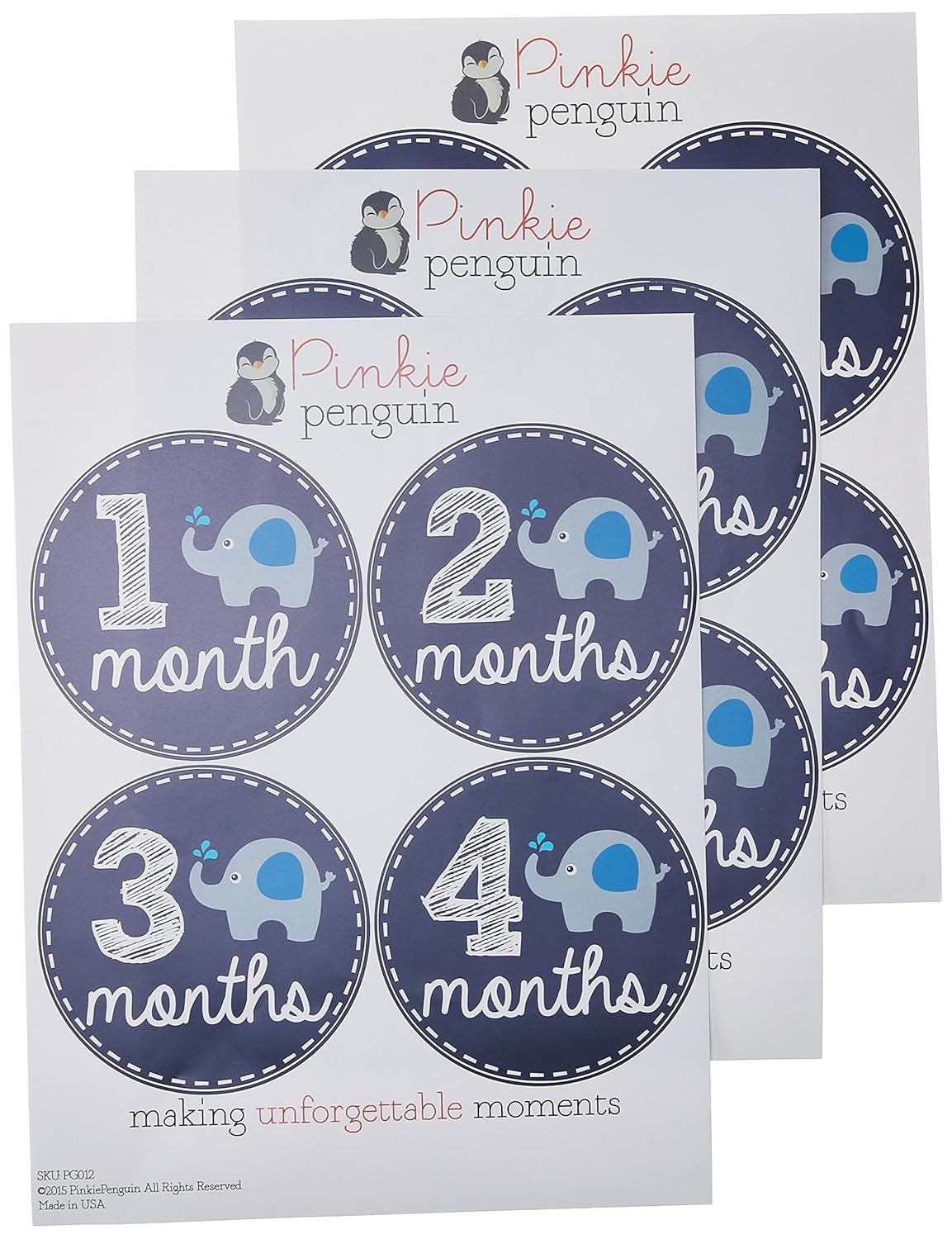 • The Pinkie Penguin Elephant Baby Monthly Stickers - Milestone Onesie Stickers - 1-12 Months - Baby Boy Month Stickers is a