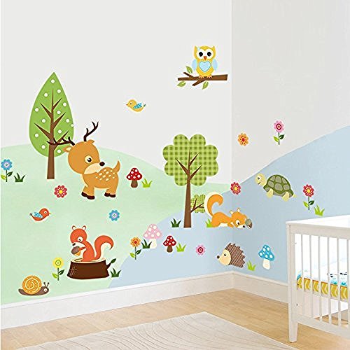 • The Amaonm® Cute Cartoon Natural Wildlife Wall Decals Forest Animals Wall stickers Murals Owls, Deer, Fox Peel & Stick for Baby Children's Playroom Removable DIY Arts Crafts Decor for Nursery room is a