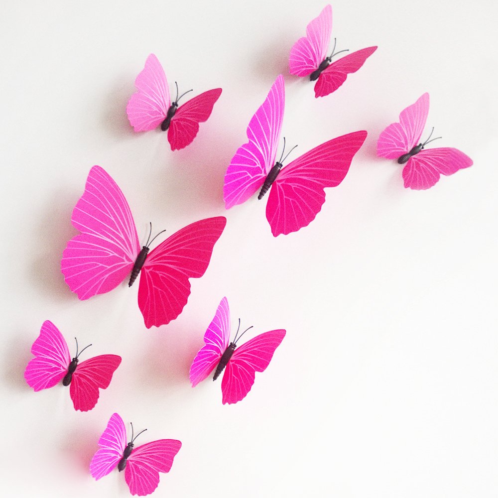 • The MLM 12PCS 3D Monochrome Butterfly Wall Stickers with Adhesive Art Decal Satin Paper Butterflies Home DIY Decor Removable (Rose Pink) is a