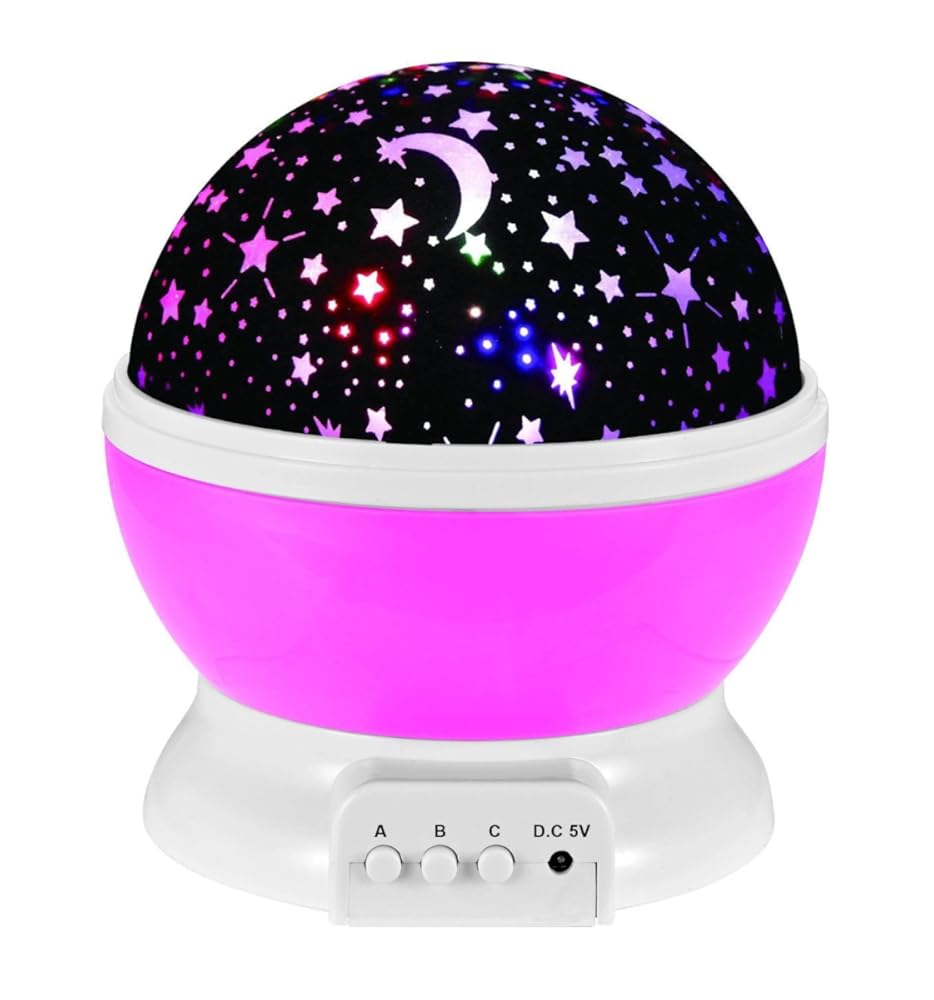 • The KssFire 360 Rotating Round LED Night Light Projector Lamp 3 Models Light Kids Bedroom Children's Room Romantic Rotating Cosmos Star Sky Moon Projector Baby Nursery Decorative Light (Pink) is a