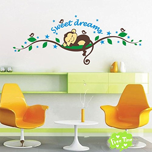 You buy Monkey Birds Forest Green Leaves Wall Decal PVC Home Sticker House Vinyl Paper Decoration WallPaper Living Room Bedroom Kitchen Art Picture DIY Murals Girls Boys kids Nursery Baby Playroom Decorwith Coupon : DROP will be discounted 30% price