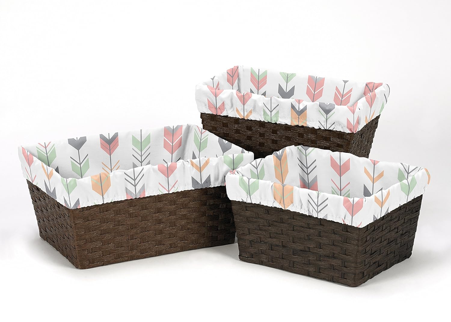 • The Sweet Jojo Designs Set of 3 One Size Fits Most Basket Liners for Grey, Coral and Mint Woodland Arrow Bedding Sets is a