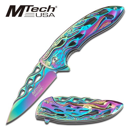 • The MT-A822RB RAINBOW FINISH NRtstaQHS SPRING ASSISTED 8kTq1Y OPENING KNIFE WITH FLAMING HANDLE ajuiioptr 4567fffg 567ybghjk Mtech Ballistic Assisted Opening KnifeSpring Assisted Opening Knife4.75" Closed Length3.25" Rainbow Stainless Steel Blade3MM Thick Rainbow BladeUpper Flaming Cut Out kEO3BQo9 Pattern on BladeRainbow Finish Aluminium HandleFlaming Cut Out Pattern on HandleIncludes Rainbow H6ps9vhK Finish Pocket Clip is a