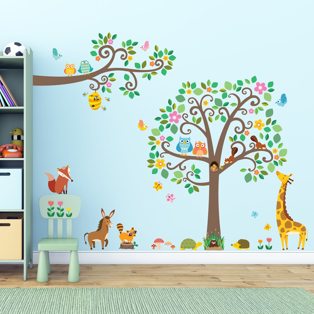 • The Decowall,DM-1502P1512,Large Scroll Tree and Animals & Scroll Branches and Animals peel & stick Nursery wall decals stickers is a