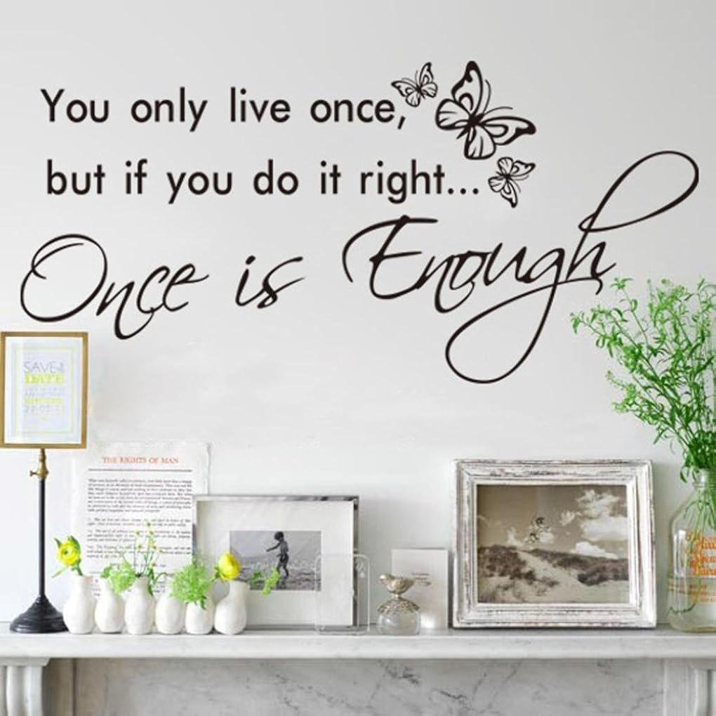 High-Capacity Ni-MH Pre-Charged Rechargeable Batteries provide the extra power you need. Whether for professional or everyday use, a longer runtime is just one perk of these high-quality, reliable batteries. With a low self-discharge technology, your batteries can sit for years and still be ready when you need power. For the best performance, store fully charged batteries at about 68°F/20°C.You want your flashlight to be ready when you need it. Flashlights using ordinary batteries can dim after sitting unused for too long. AmazonBasics Batteries shine bright even after storage. They are perfect for high-power, high-drain devices.the Hatop You only live once Art Vinyl Quote Decal Mural Room Home Wall Sticker Decor Don't be limited by batteries. AmazonBasics Batteries work well with a variety of electronics, including high-power devices such as digital cameras, electric toothbrushes, and flashlights.Some rechargeable batteries permanently lose capacity after long-term storage, resulting in reduced runtime. Your AmazonBasics Batteries maintain their capacity for years.When you need power, rely on the long-lasting performance of Energizer MAX batteries. It’s our most versatile battery – capable of powering a wide range of everyday devices. Energizer MAX AA, AAA, C and D batteries hold their power for up to 10 years in storage (9V holds power for up to 5 years in storage) so you can be assured that backup energy is always on hand. Energizer MAX batteries are available in AA, AAA, C, D and 9V sizes.Hatop You only live once Art Vinyl Quote Decal Mural Room Home Wall Sticker Decor is best for youSpecifications: 100% brand new and high quality Features: Removable Style:Wall sticker It can be applied to any smooth , clean and dry surface of walls, tiles, glass, furniture, etc., not suitable for dirty or rough surface. No transfer film needed, simply peel and stick Size: 88*42CM Material:PVC Color: black How to use: Ensure the surface is smooth, do not stick on the rough or uneven surface. Choose the place you want to apply, clean up the ash and grease, keep it dry and clean. Stick in accordance with the picture, or DIY in your own idea. Peel off the paper and then stick on the wall, pave from the middle to left and right. Package Include: 1PC You only live once Art Vinyl Quote Decal Mural Room Home Wall Sticker Decor