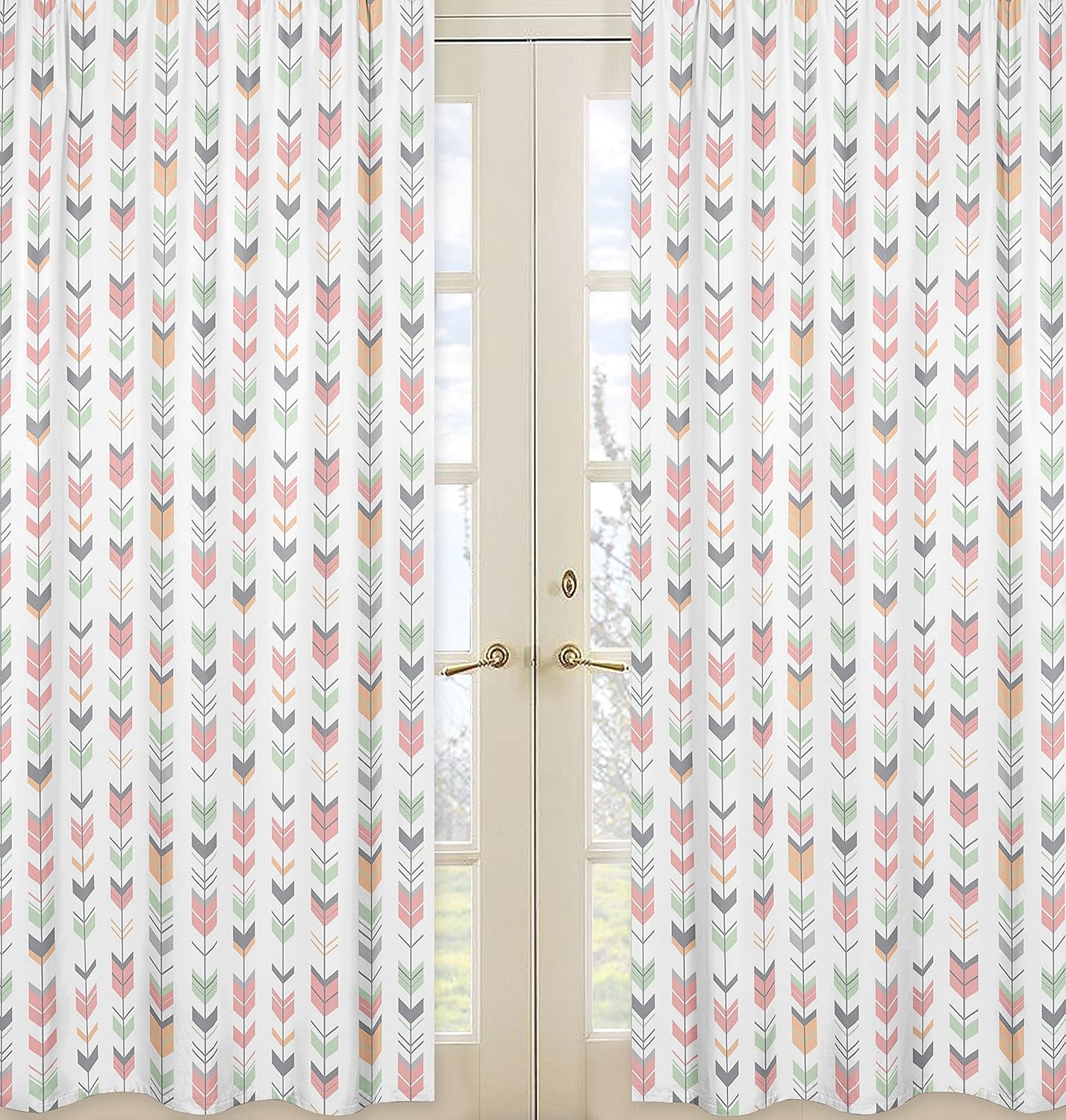 • The Sweet Jojo Designs Grey, Coral and Mint Woodland Arrow Girls Bedroom Decor Window Treatment Panels - Set of 2 is a