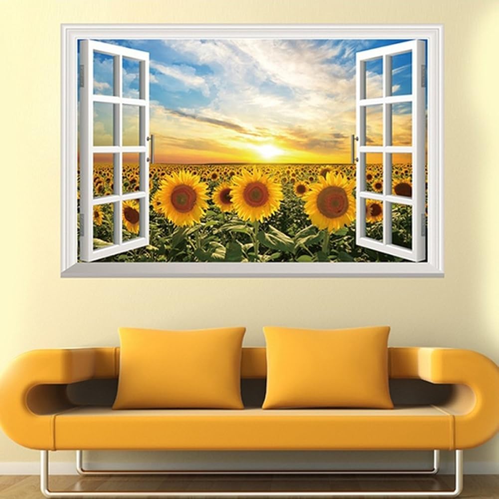 • The Wall Sticker 3D Fake Windows Sunflower Sun Paper Home Decal Removable Wall Vinyl Living Room Bedroom PVC Art Picture Murals Waterproof DIY Stick for Adults Teens Kids Nursery Baby is a