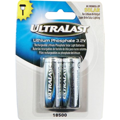 • The Ultralast 2 Pack Lithium Phosphate 18500 cells for super bright outdoor solar lighting 800mAh is a