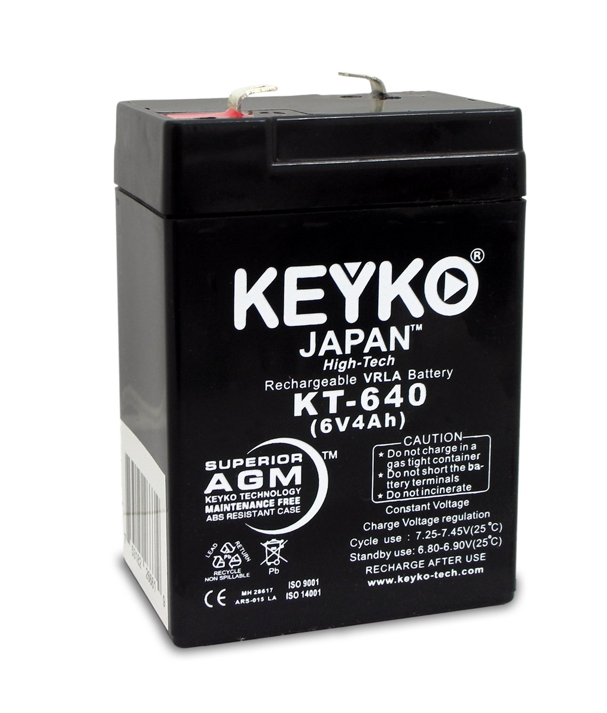 • The 6V 4Ah SLA Sealed Lead Acid Genuine KEYKO ¨ AGM Rechargeable Replacement Battery (W/F1 Terminal) is a