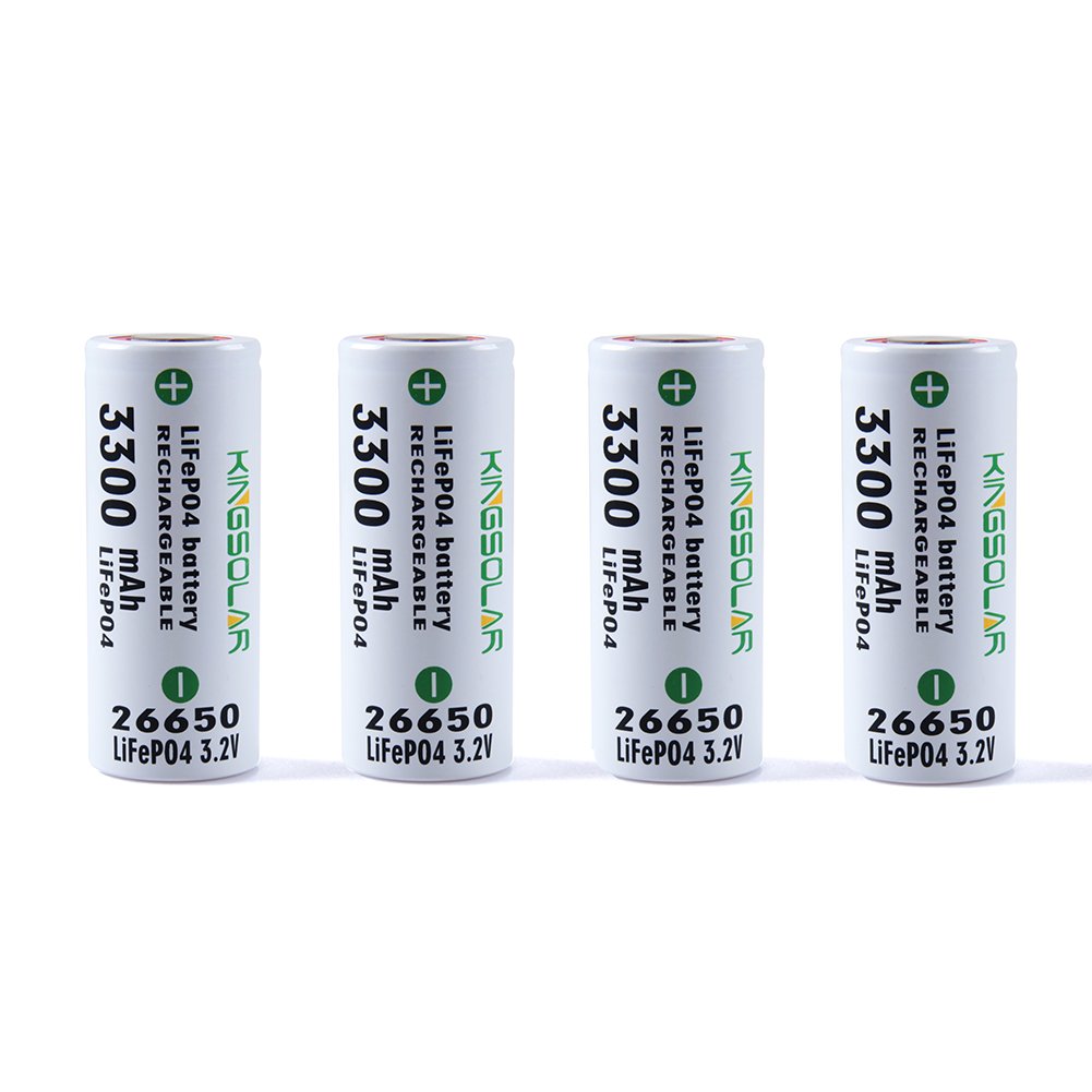 • The KINGSOLAR™ 4Pcs 26650 3.2V 3300mAh Rechargeable Lithium Iron Phosphate Lifepo4 Battery is a