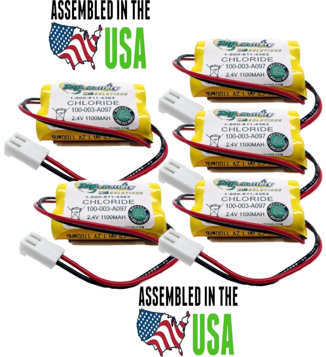 Pack of 2 9V Ni-MH Rechargeable BatteriesImproved anti-corrosion components and new zinc composition resulting in 10-years anti-leakage shelf lifeDesigned to provide reliable and lasting performance for both high and low drain devicesUnique technology that enables better performance after storage, over-discharge, and high temperaturesWorks with a variety of devices including digital cameras, game controllers, toys, and clocks; Rechargeable.the 5PC Chloride 100003A097 and A093 Replacement Battery How do the Recharge Universal batteries last so long? Advances in battery technology have minimized self-discharge and natural aging effects, resulting in a 5-year battery life with normal usage. Improvements to the engineered alloy used in these batteries created the ideal balance for consumers like you: high-capacity power and the ability for the battery to hold its charge. Recharge Universal can be recharged up to 1000 times, consistently delivering long-lasting and stable voltage to your most energy-needy devices.5PC Chloride 100003A097 and A093 Replacement Battery is best for youDescription: 100003A097 and 100003A093 Chloride Battery for Emergency Lighting Exit Signs Emergency Light, Exit Sign Manufacturer: Chloride Model: 100-003-A097 Voltage: 2.4v Nominal Capacity: 1100mah Dimensions: .1.15 x .60 x 2.42 Also Fits:Chloride 100-003-A093, Chloride 100-003-A095, Chloride 100003A097, Interstate Batteries ANIC0865
