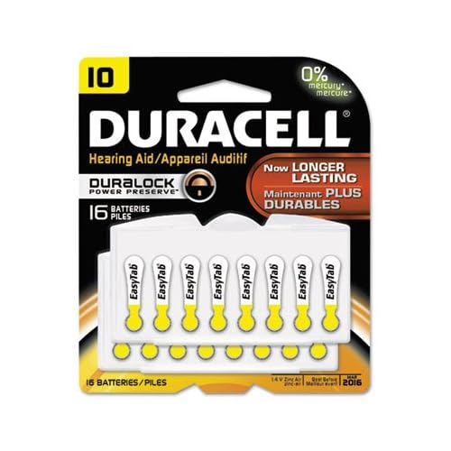 • The Duracell Button Cell Hearing Aid Battery, #10, 16/Pk is a