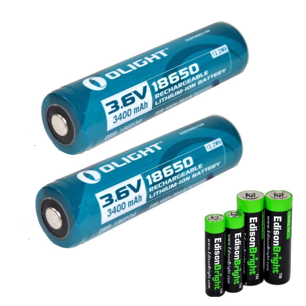 • The 2 Pack Olight 3400mAh Protected 18650 Rechargeable Li-ion Batteries with EdisonBright AA/AAA alkaline battery sampler pack.- Designed for M22 M21X M20S S20 M18 SR51 TM26 TM15 TM11 P12 SRT7 SRT6 P25 EC25 TK75 PD35 PD32 TK22 M21X BT20 i4 and other High Drain Devices is a