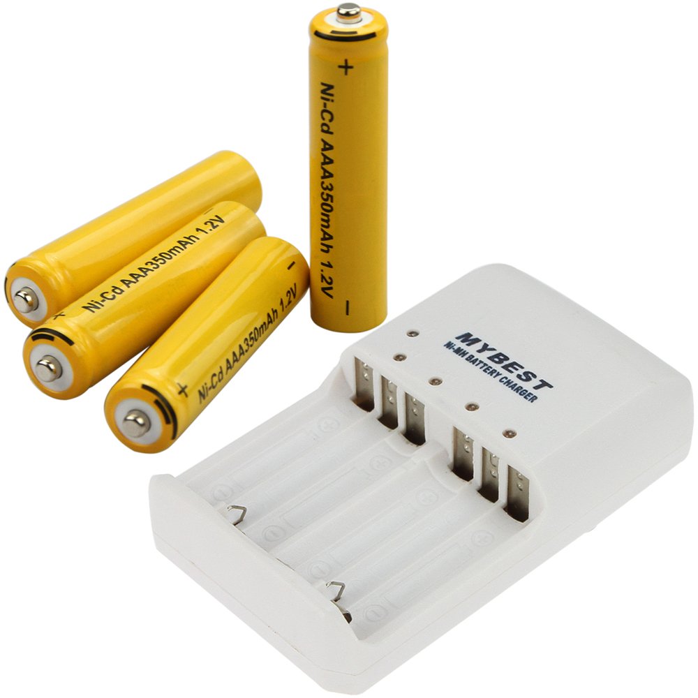 • The MuchBuy 4pcs 1.2v AAA Nickel Cadmium 350mAh Rechargeable Battery with AA AAA Battery Universal Charger is a