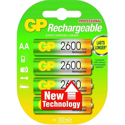 • The GP Pack of 4 Rechargeable AA 2700 mAh NiMH Batteries is a