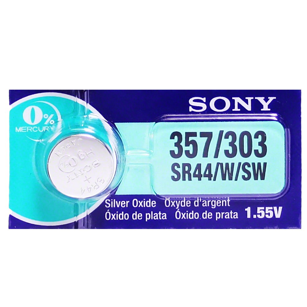 • The Sony 357 / 303 (SR44/W/SW) 1.55V Silver Oxide 0%Hg Mercury Free Watch Battery (5 Batteries) is a