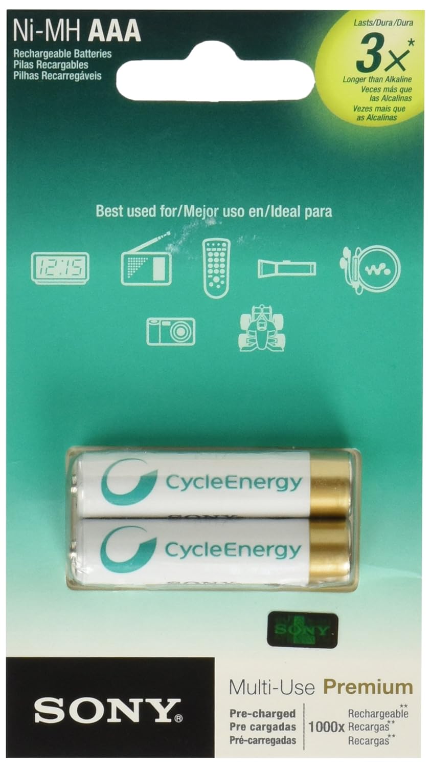 Sony Cycle Energy NHAAAB2KN 800 mAh AAA Pre-Charged Batteries (2 Pack) (Discontinued by Manufacturer) is best for youSony's Cycle Energy Ni-MH AAA 2pk multi-use premium batteries offer outstanding performace and power so that you can get the most out of your electronic devices. Sony's Ni-MH batteries come Pre-charged and lasts 3x longer than alkaline.