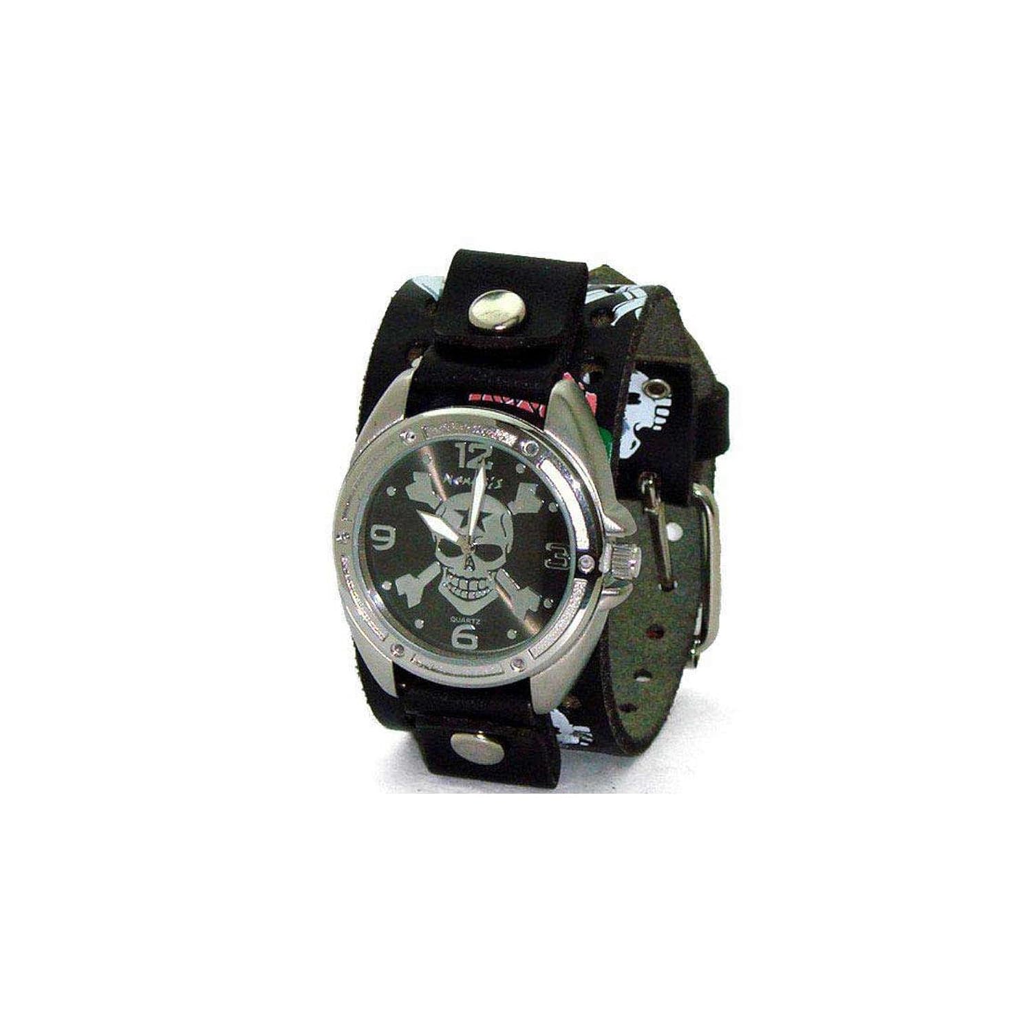 Cross Bones Skull (Black) Watch is best for youJapanese quartz movement. Durable mineral crystal protects watch from scratches. Silvertone Alloy case. Genuine 100% made in the USA leather band. Band length: 10.5 inches. Band width: 1.5 inches. Water resistant but not water proof.