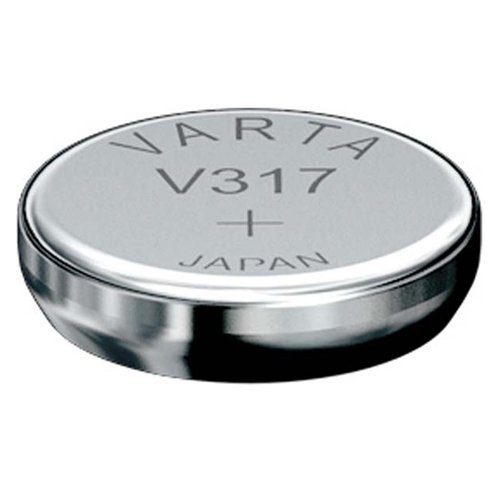 Watch Battery, 1.55v 8 mAh - V317101111 is best for youWatch Battery, 1.55v 8 mAh. Button cell batteries are for use in watches, cameras, calculators and many other electronic components. Replaces Eveready 317, Duracell D317, Maxell SR516SW, Varta V317. Watch Battery, 1.55v 8 mAh. VARTA Type Designation in. V317. Reference IEC: SR62. Electrochemical System: Primary Silver. Diameter: 5.8 mm (0.23 in). Height: 1.6 mm (0.06 in). Weight: 0.18 g (0.01 oz). Capacity: 8 mAh. Voltage 1.55 V.