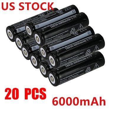 20 PCS Black 18650 6000mAh 3.7V Li-ion Flashlight Rechargeable Battery - Recharge: up to 1000 cycles - USA Stock best Batteries