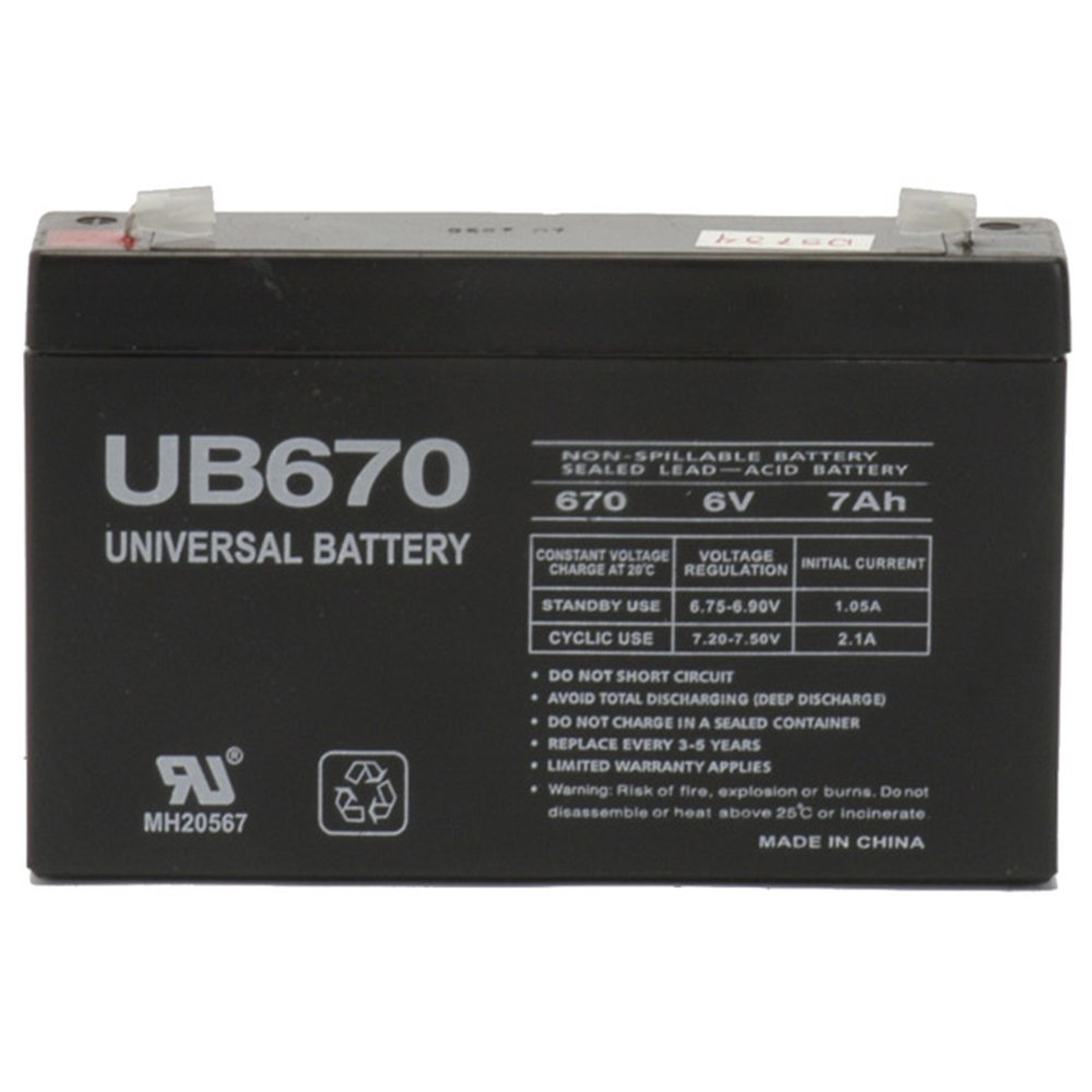 6V 7Ah SLA Battery for Huffy BMW X6 Ride On Toy Car Model # 17034 is best for youUB670 6V 7AH - Absorbant Glass Mat (AGM) technology for superior performance. Valve regulated, spill proof construction allows safe operation in any position.Common uses for the UB670: Consumer Electronics, Electric Vehicles, Engine Starters, Golf Carts, Hunting, Lawn and Garden Tools, Medical Mobility, Motorcycles, Photography, Power sports, Portable Tools, Solar, Toys and Hobby, Access Control Devices, Emergency Lighting, Security.