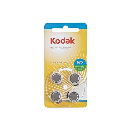 4 Pack Kodak Hearing Aid Battery Size 675 (PR44, K675ZA) 1.45V Exp 03/2017 is best for youTHIS LISTING IS FOR A PACK OF 4 X SIZE 675 HEARING AID BATTERIES EXPIRY DATE 2017 Kodak hearing aid batteries are becoming a market leader, the reason that Kodak are gaining a superb reputation is quite simply because they are one the best quality and last the longest in the premium battery range. If you have ever bought batteries from the Far East at what appeared to be a great price, you will know that they just don't last, sometimes having to use 3 of the batteries to get the same time as one branded.