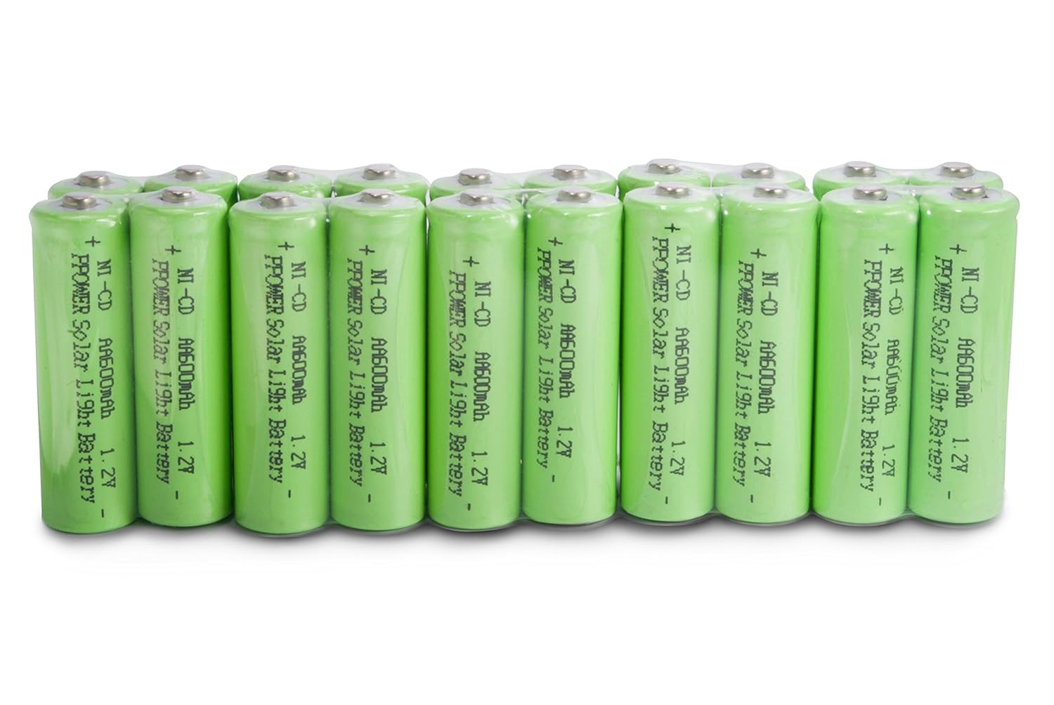 P-POWER 20 packs Solar Light AA Ni-CD 600mAh Rechargable Batteries is best for youAbout PPOWER PPOWER is a certified brand manufacture that produce PPOWER series general use battery such as 18650 rechargeable battery, varies of battery chargers for different types of batteries . The PPOWER series products have been certified by CE and ROHS. About Batteries Model: NiCd AA Rechargeable Battery 600mAh 1.2V ; REAL Capacity: 600mAh ; MPN: NiCd AA Rechargeable Battery ; Top Voltage: 1.2V Chemical Composition: NiCd Package includes 20 packs Product Warranty All Ppower batteries are covered by two-year warranty!! Please do not hesitate to contact us for any problem! However, please notice and understand buyers are responsible for the replacement shipping fees.