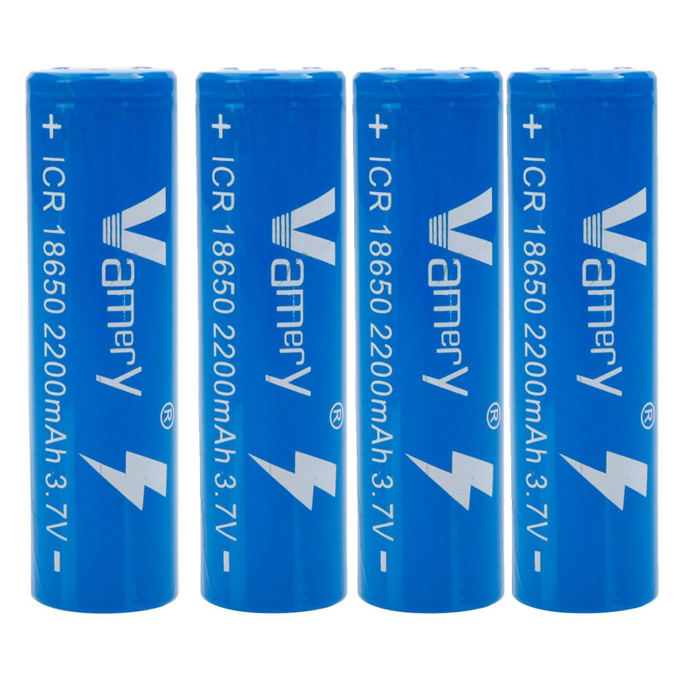 Vamery 4PCS 18650 3.7V 2200mAh Li-ion Rechargeable Battery Flat Head Charge Blue best Batteries