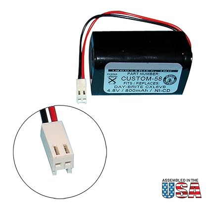 Exell Battery Emergency Lighting Battery Fits and Replaces CTL 685896020, CTL N700AAC-F22C/C, Day-brite CXL6VB, Interstate ANIC0938, Interstate NIC0939 FAST USA SHIP is best for you4.8V Emergency Lighting Battery Fits Day-Brite CXL6VB, CTL N700AAC-F22C/C4.8V Emegency Lighting Battery is an ideal replacement battery for traditional emergency lighting and exit signs. These signs have been primarily focused on guiding the interior occupants of a building to the nearest exit in the event of an emergency make sure to replace the batteries in these emergency lighting units and ensure your equipment is up to code and the building is safe for its occupants. 4.8V Emergency Lighting Battery SpecificationsVoltage: 4.8VChemistry: Nickel Cadmium (NiCD)Length: 1.97in (50.03mm)Width: 1.11in (28.1mm)Terminal Types: CONNECTOR4.8V Emergency Lighting Battery Fits: CTL CTL685896020, CTL N700AAC-F22C/C, Day-Brite CXL6VB, Interstate Batteries ANIC0938, Interstate NIC0939Need more than one 4.8V Emergency Lighting Battery? We offer great discounts on quantity orders and Discount Shipping offers available.SpecificationsBrand: Exell Battery Output Voltage: 4.8V Amperage: 800mAh Chemistry: NiCD Length: 1.97' Height: 1.11' Width: 1.11' Country of Manufacture: U.S.A.CompatibilityCtl: 685896020, N700AAC-F22C/C Day-brite: CXL6VB Interstate Batteries: ANIC0938, NIC0939