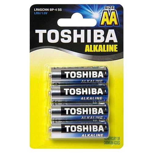 Toshiba Blue Line AA Alkaline 1.5V Batteries (4 Batteries) is best for youToshiba AA Blue Line Alkaline Batteries. Long-lasting power: Compatible with high current equipment. Excellent shelf life: Minimal self-discharge which allows for long storage. Compatible with high current equipment: digital camera's, notebook computers, cellular phones, headphones. Available in Shrink, Blister and multi packs in a variety of sizes.