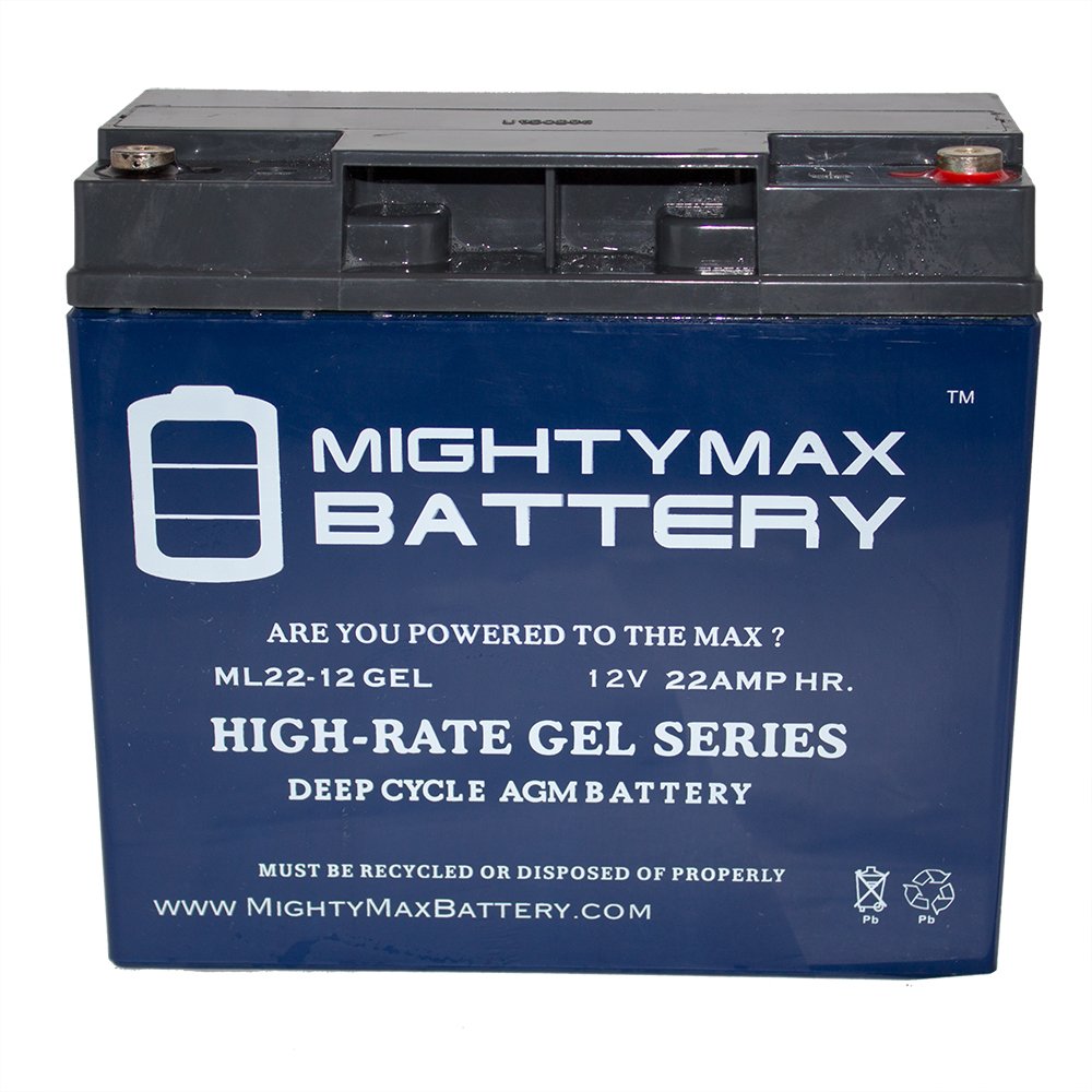 12V 22AH GEL Battery for Diehard Platinum 1150 Jump Start - Mighty Max Battery brand product is best for youDelivering power when you need it, the Mighty Max ML22-12GEL 12 Volt 22 AH (Maintenance Free) battery. Requires no addition of water during the life of the battery. The Mighty Max ML22-12 GEL is a TRUE DEEP CYCLE battery that can be mounted in any position, requires no maintenance. When a Gel Cell battery is charged, no hazardous fumes escape the battery case, gases are processed within the battery itself.Mighty Max GEL batteries are utilized in a wide variety of applications including; Consumer Electronics, Electric Vehicles, Engine Starters, Golf Carts, Hunting, Lawn and Garden Tools, Medical Mobility, Motorcycles, Power sports, Portable Tools, Solar, Toys and Hobby, Access Control Devices, Emergency Lighting, Security and moreSpecifications: Voltage: 12 VoltAmperage: 22 AHChemistry: GELTerminal: Internal ThreadBattery Dimensions: 7.13 in x 3.01 in x 6.57 inWeight: 13.01 LbsWarranty1 YearGenuine Mighty Max battery Product
